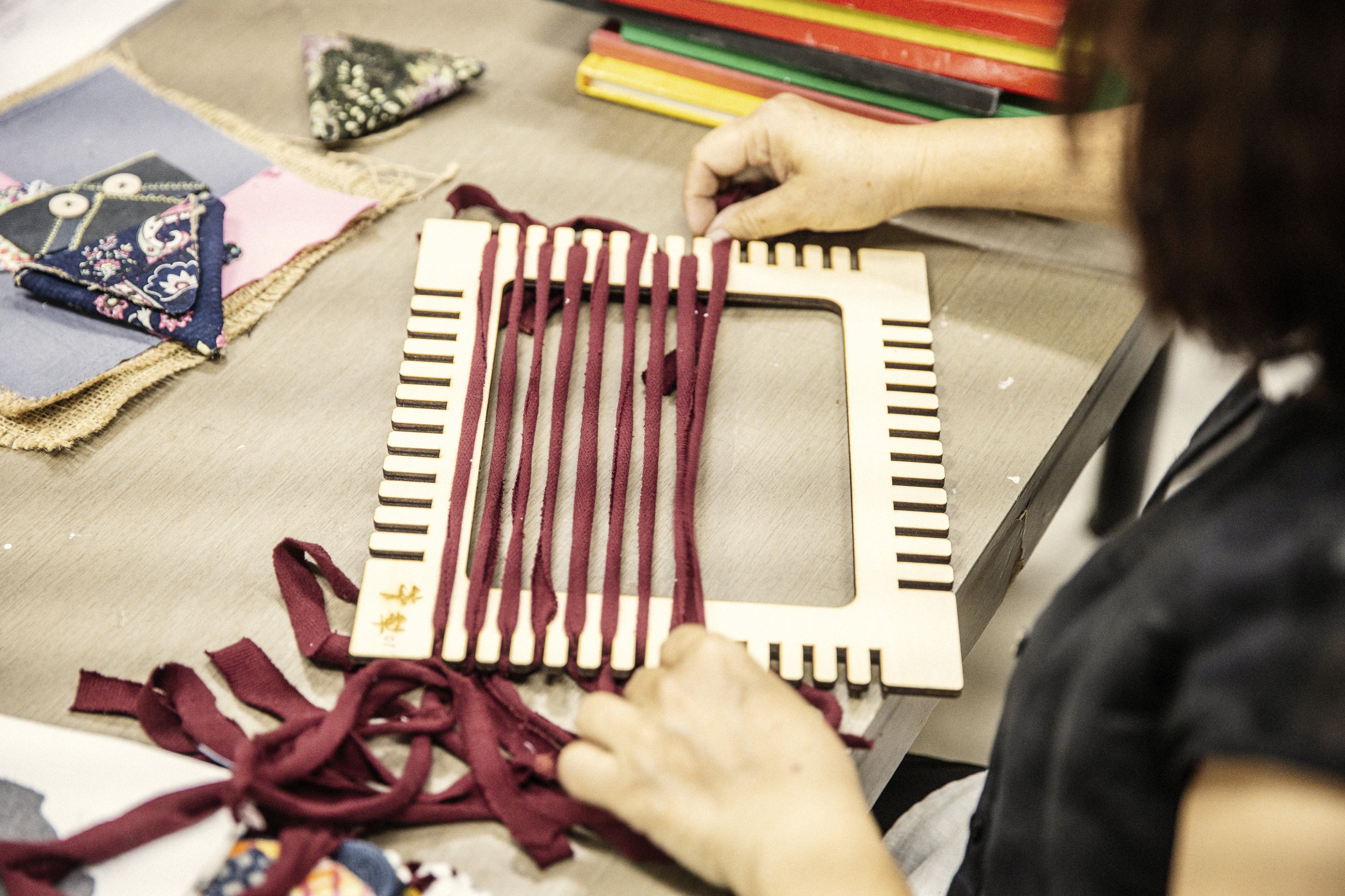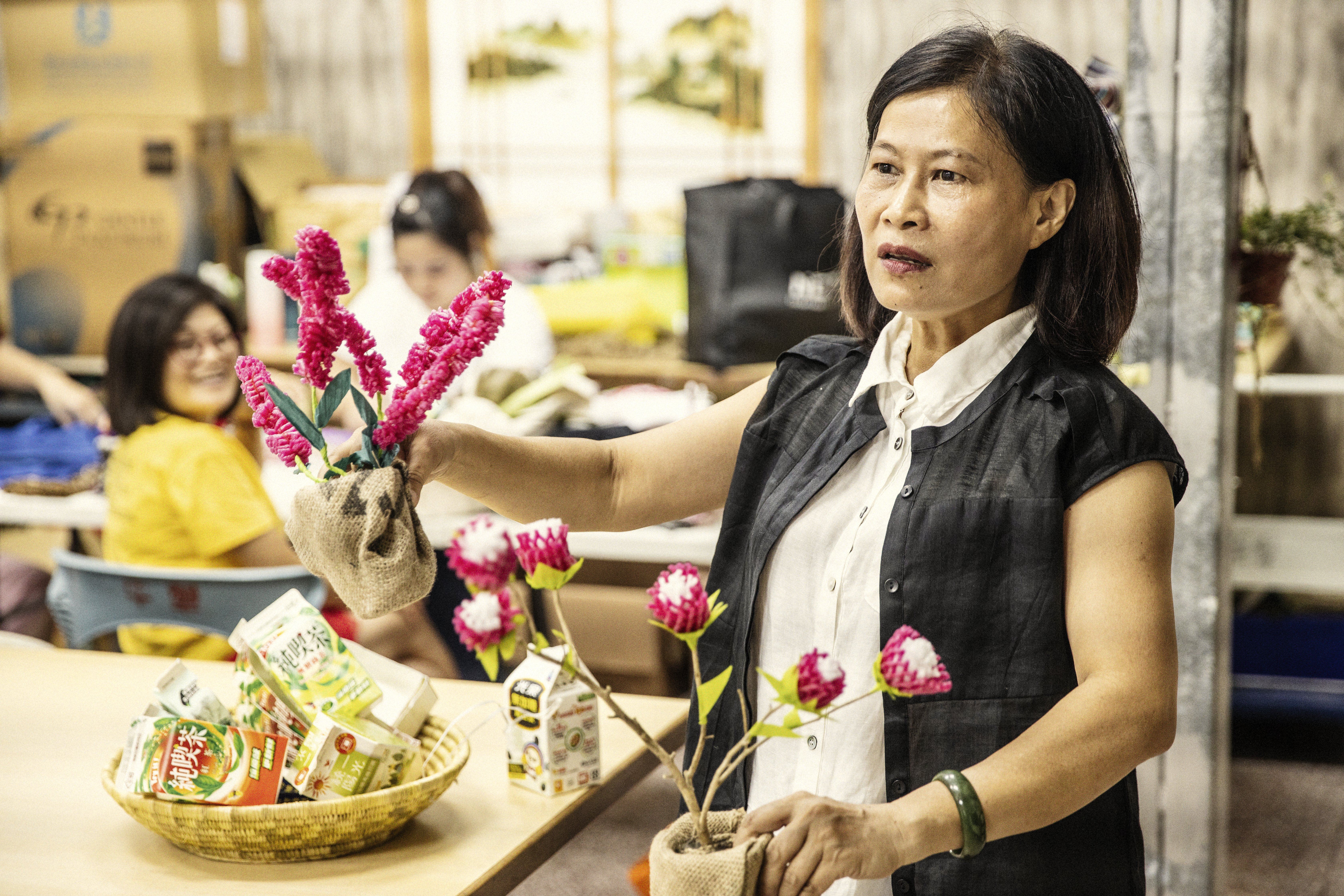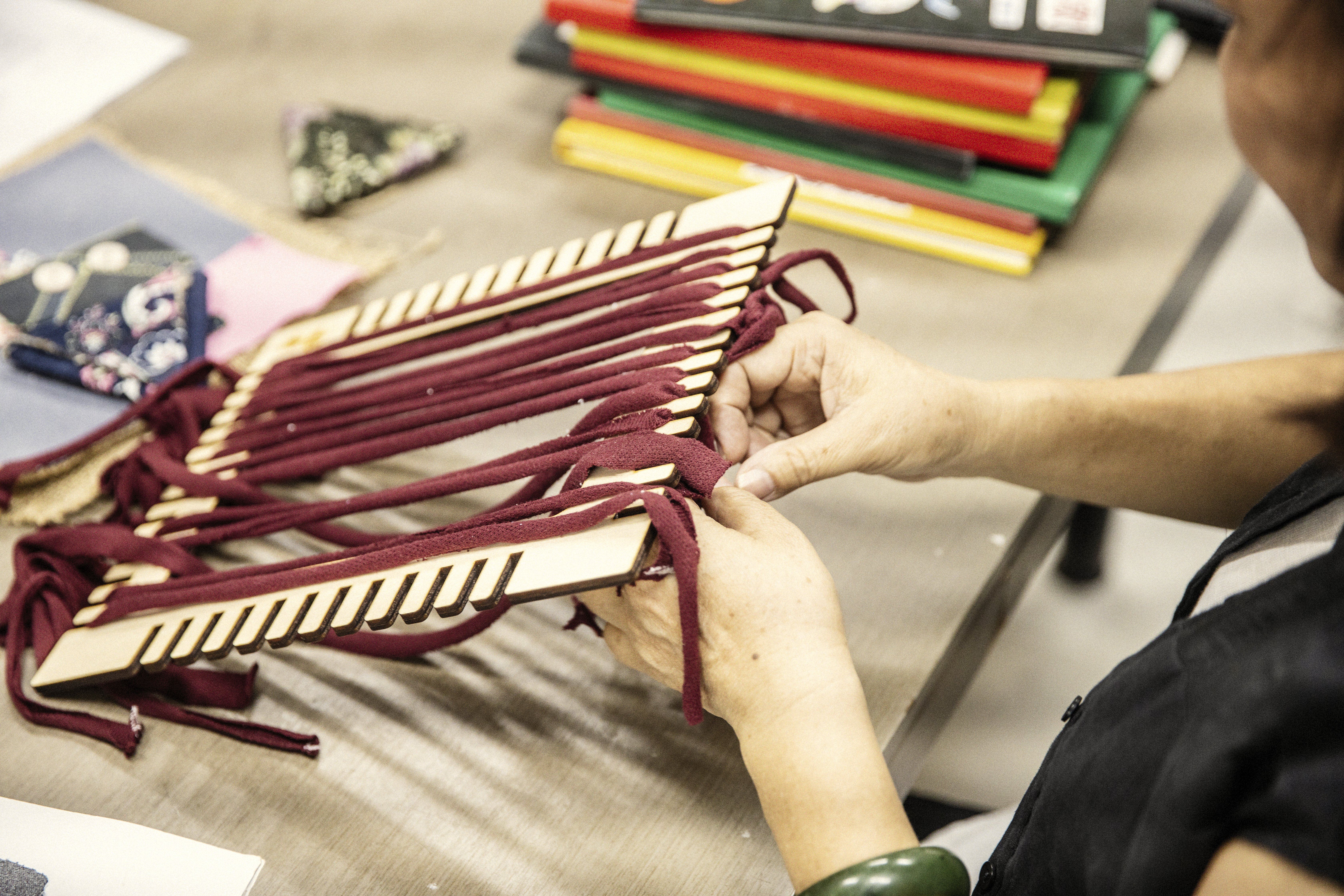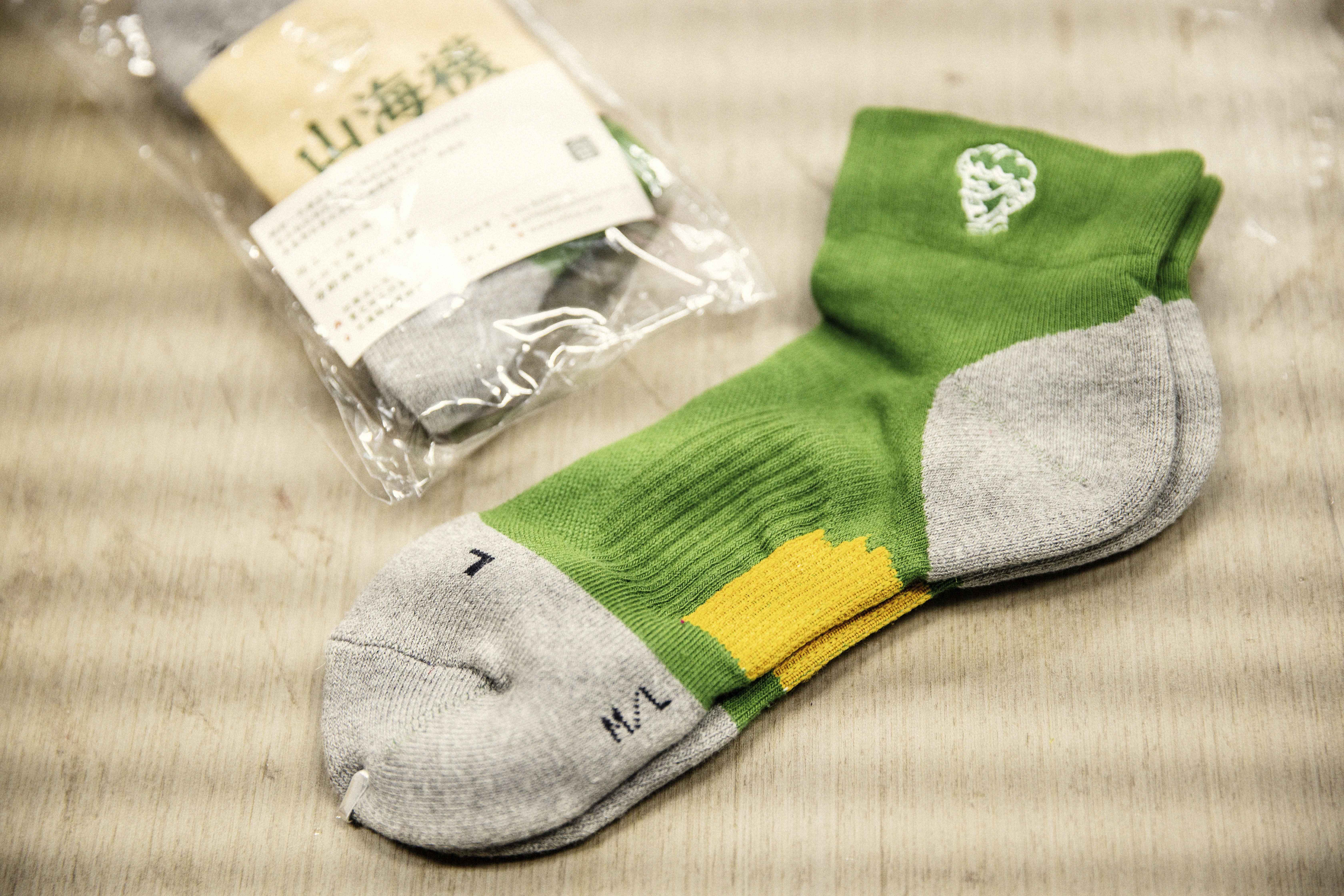 2018 年,協會努力募集經費,帶社區長輩去日本參加 Unknown Asia Art Exchange OSAKA 展覽,展出長輩們找回自己遷徙記憶的貼布畫,所建構出的一系列作品,獲得泰國評審的特別獎項。看到長者們無法到場見證這個光榮的時刻,夥伴們都感到惋惜,於是協會特別找設計師與職能治療師合作,調查東部 15 個村落,超過 200 位長輩的腳型與需求後,經過一整年的構思與實驗,開發出充滿記憶與愛的「山海襪」,呵護一輩子都在上山下海勞動與移動的長輩。