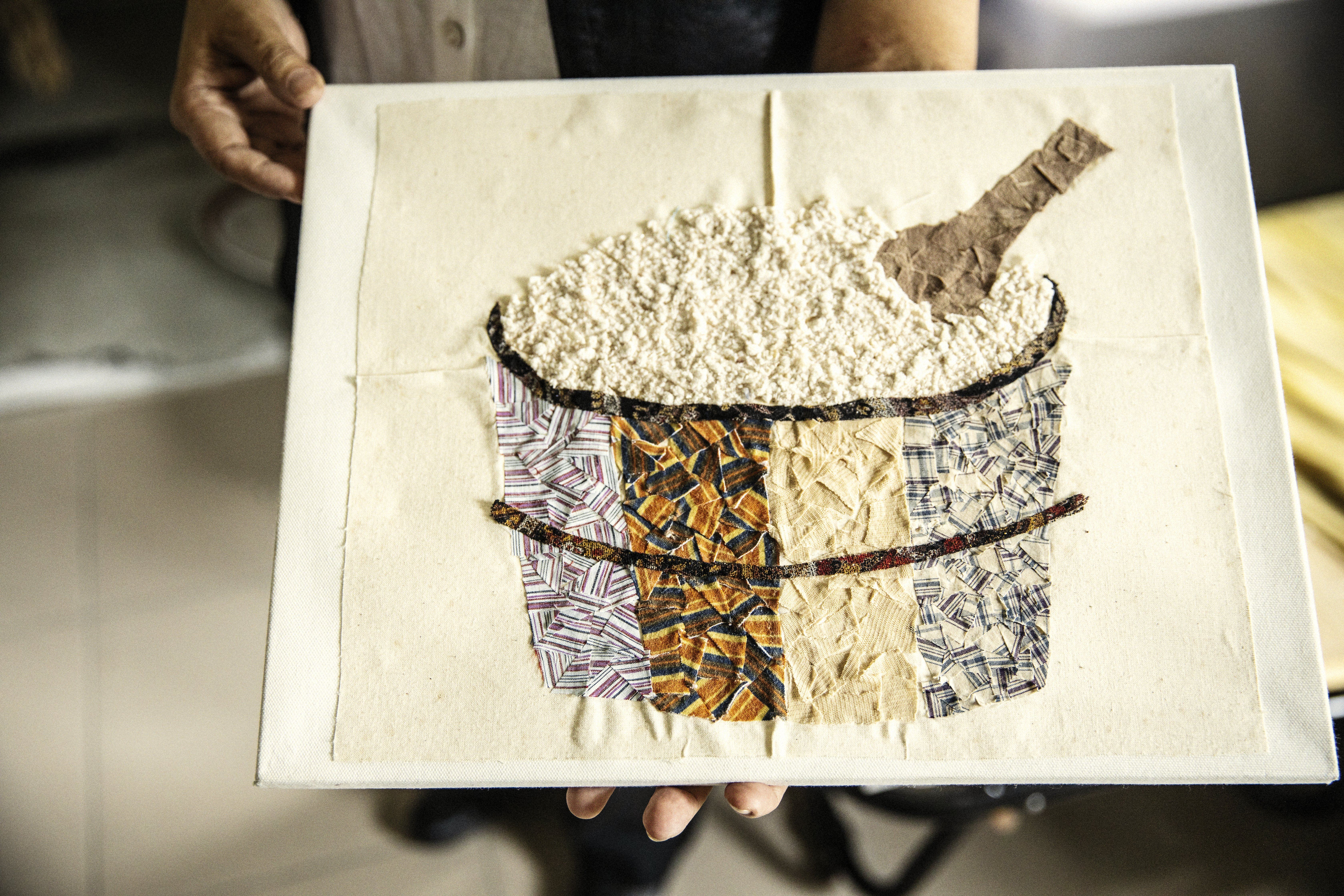 游雅帆和楊鈞弼透過牛犁協會,帶領社區青年利用不穿的衣服剪成碎布,到各社區辦理貼布畫課程,讓老人家畫下自己的手或腳,甚至是自畫像、人生歷程中印象最深刻的一幕,再挑選不同顏色與式樣的布,讓長輩用貼布畫講述自己的生命故事,手腦並用的貼布畫課程,不僅可延緩失能,多場活動下來,更收集到許多東部早期的生活圖像。牛犁協會將這些圖像製作成「三媽卡」桌遊卡牌,帶著這些圖卡到不同的村落,作為勾起記憶的引子,喚出更多地方長者封箱在記憶大海的故事。
