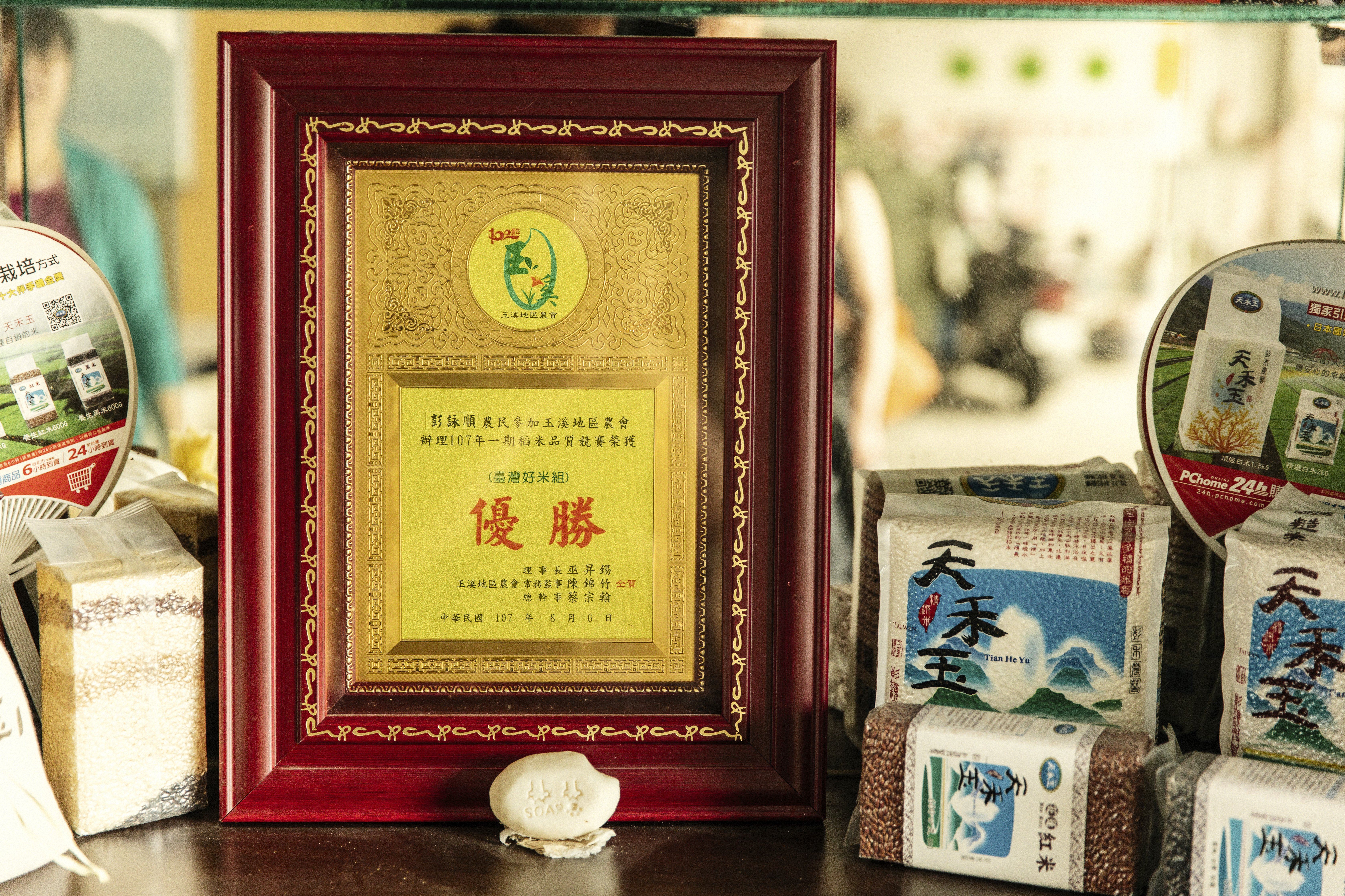 彭鏡興將種稻知識和多年累積的技術傳授給兒子,也把強調自耕現碾、自產自銷的自創品牌「天禾玉」交給彭詠順接續發光發熱,每一期「天禾玉」產出的米必送SGS檢驗,通過每一項檢驗才能銷售,「自己種的米自己賣」是他對米從一而終的堅持。他得意的說,「禾」是稻米,以「天禾玉」打響海外名稱,就是要昭告天下:「最好吃的米,就在玉里!」這是彭鏡興對自種米品質的信心和自我深深的期許。