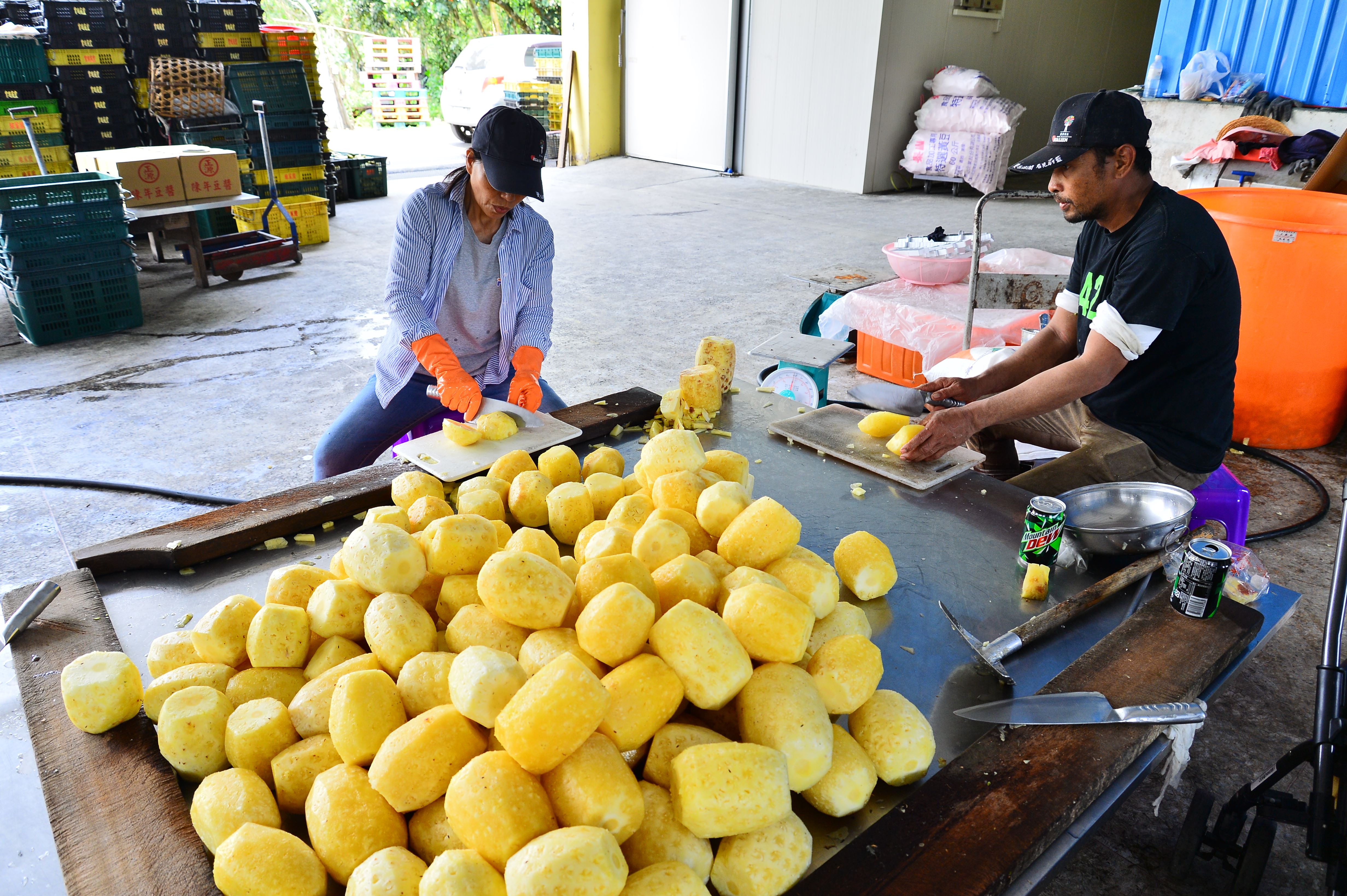 和富源村隔著一條街的對面社區,叫做富興村。空氣中飄著淡淡的鳳梨香氣,村莊裡種植著高達兩百五十公頃的廣大無毒鳳梨田,小火車和遊園專車遶行其中。他們曾是台鳳公司的鳳梨供應鏈一環,但後來因為台鳳關廠而面臨滯銷,富興社區自立自強,進行農村再造、總體營造,並與知名鳳梨酥品牌進行契作,讓鳳梨產業活化發展。